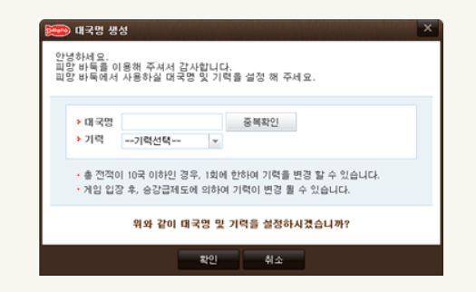 대국명은 본인이 즐겨사용하는 아이디를 입력하면 됩니다. 본인의 기력을 선택 후 확인을 클릭합니다.