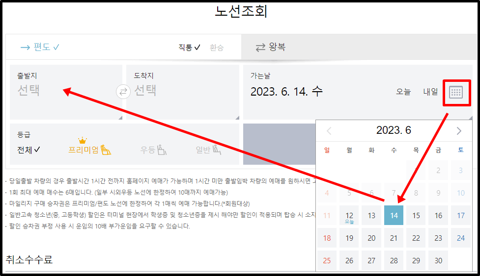 2. 오른쪽 달력모양을 클릭 후 원하는 날짜를 선택합니다.