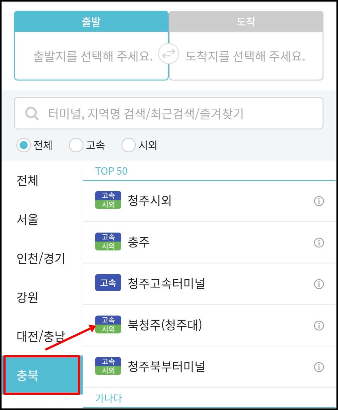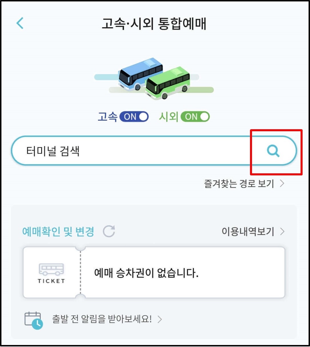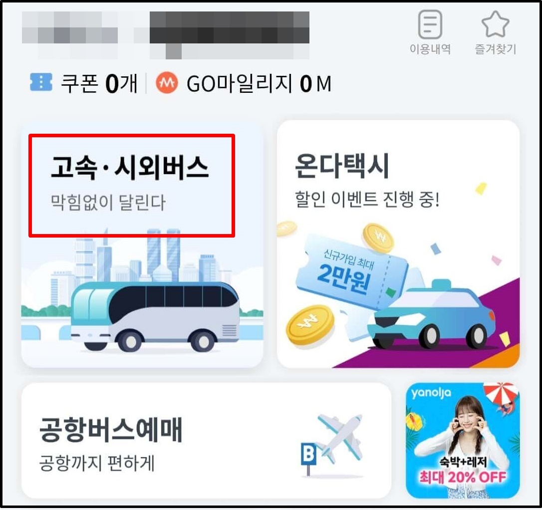 2. 메인화면의 고속, 시외버스를 클릭합니다.