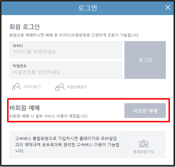 1. 아래 버튼을 클릭해 시외버스 통합홈페이지에 접속합니다.