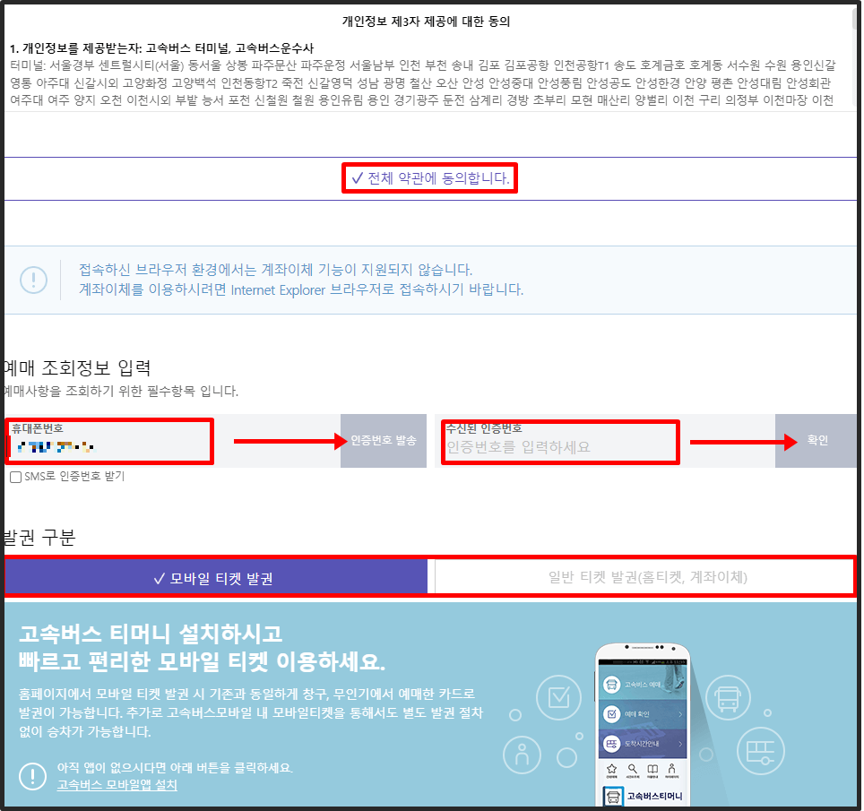 7. 개인정보 동의 후 휴대폰을 통한 인증을 진행합니다.
