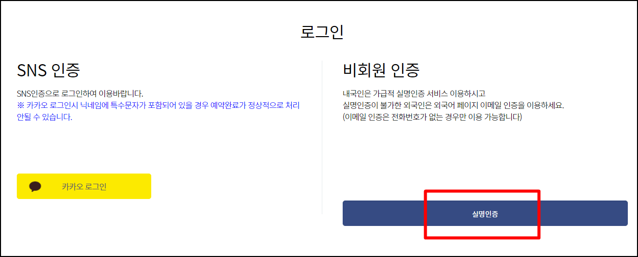 2. 카카오톡인증 또는 비회원인증 중 선택합니다.
