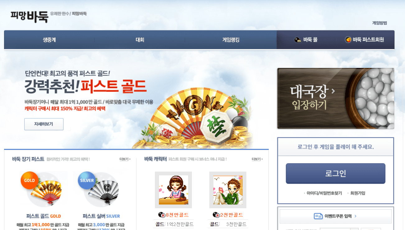 제일먼저 피망 바둑 사이트 board.pmang.com에 접속하여 회원가입을 합니다.